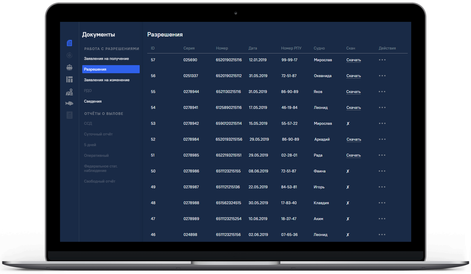 Дополнительно система упростила внутренний управленческий учет за счет формирования отчетов о вылове в разных разрезах: по судам, периодам и видам биоресурсов, а также исключила риск потери документов благодаря централизованному хранению и цифровому учету всех файлов.