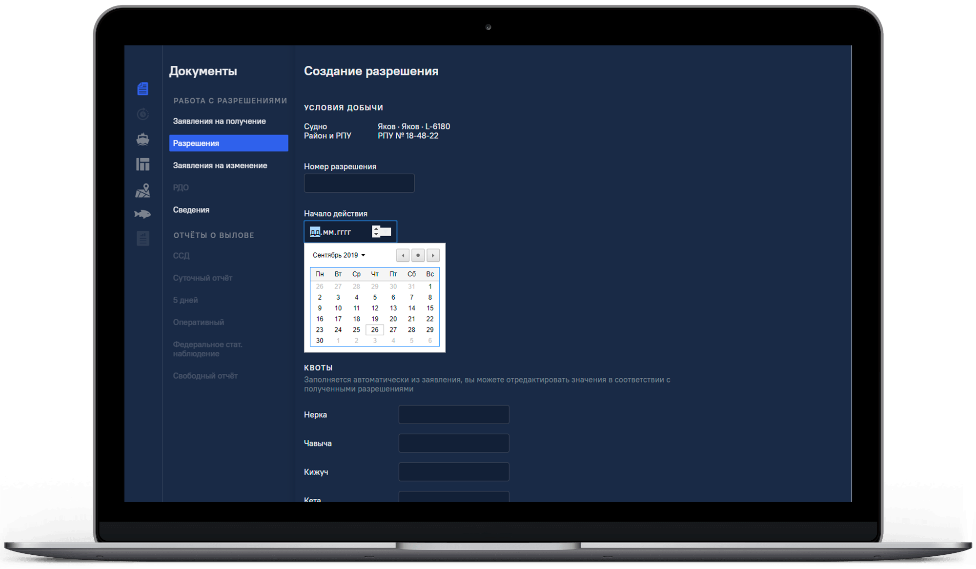 Система была разработана для упрощения подготовки заявлений на получение разрешений, автоматизации обработки судовых донесений, контроля квот и формирования отчетности для Федерального агентства по рыболовству, налоговых органов и Росстата.