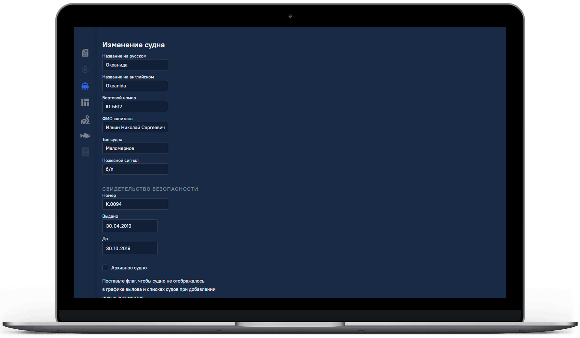 Автоматизация суточных судовых донесений и отчетности по вылову